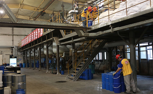 上述是工人在珊綠美縫劑工廠原料儲藏間。
