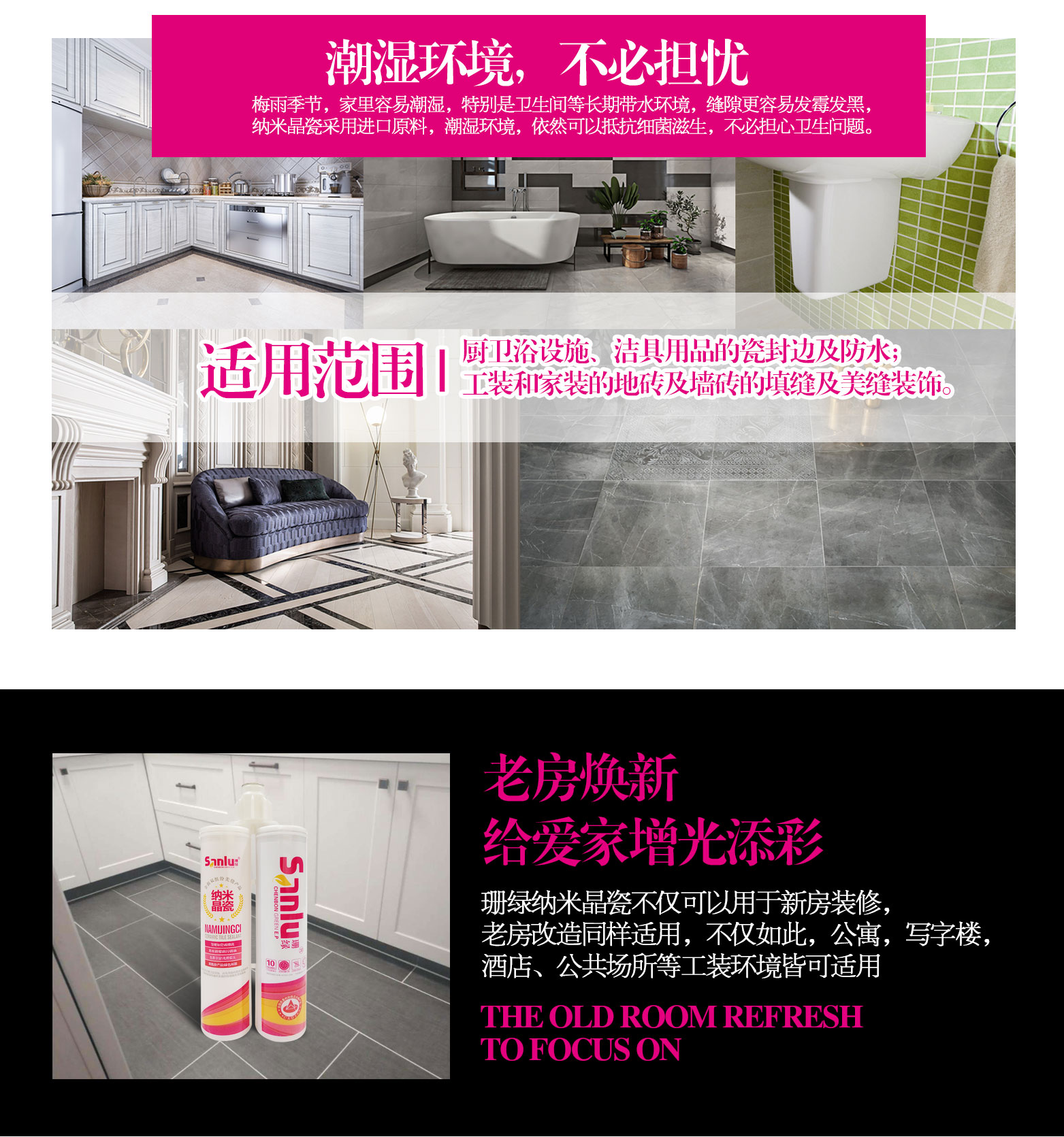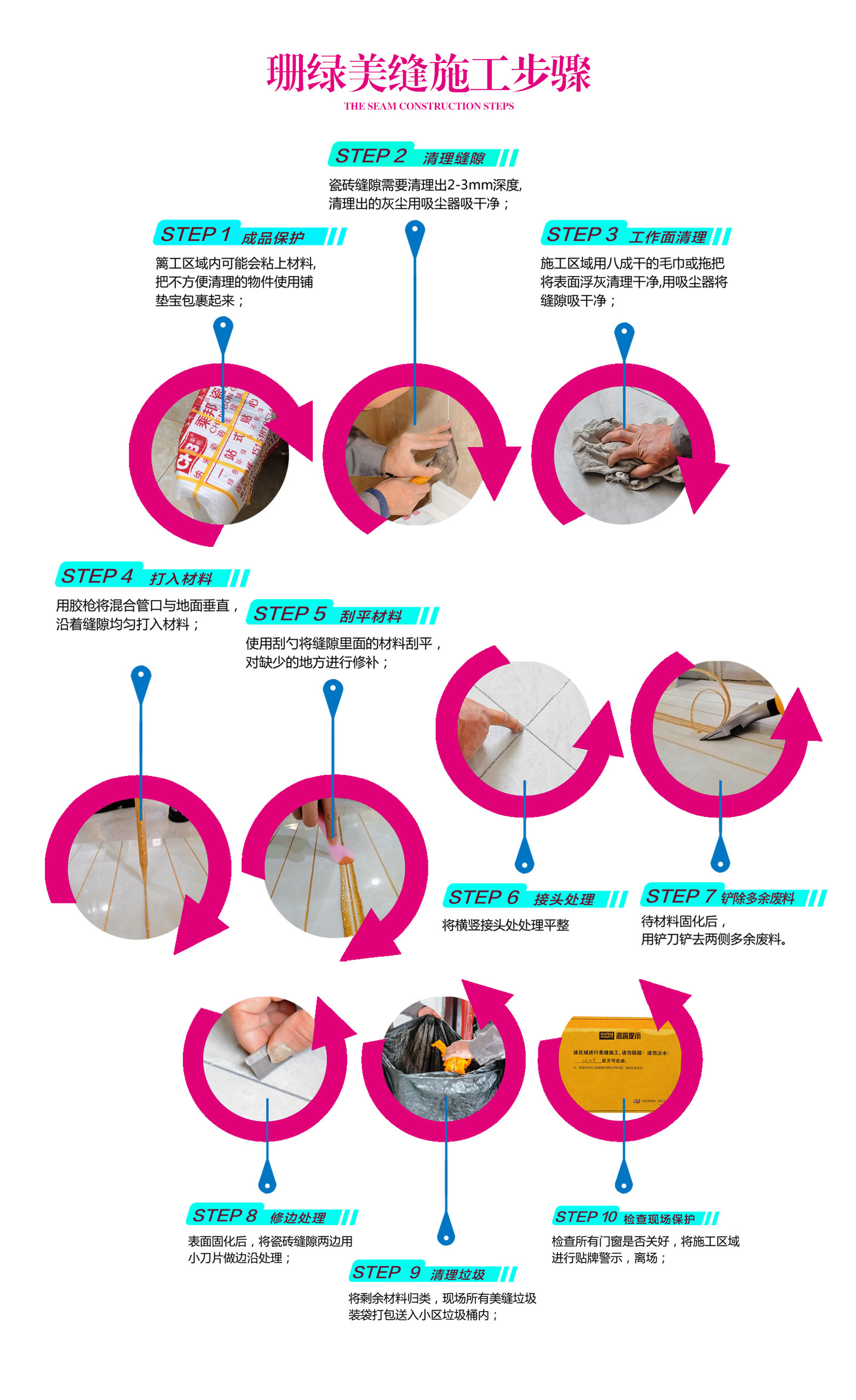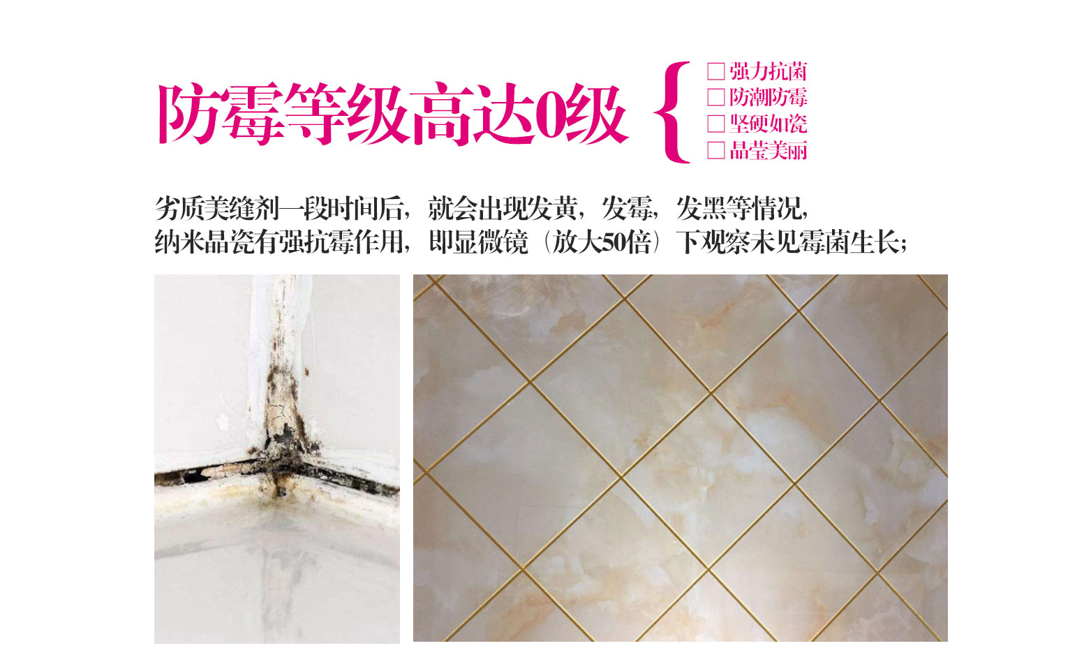 - 勾縫、裝飾效果強、堅硬如瓷,瓷磚美縫